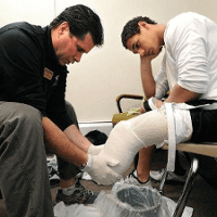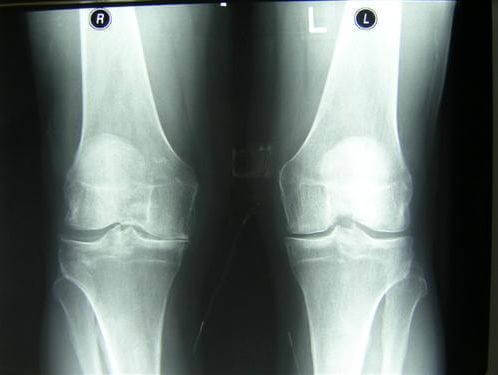 1. Articulação do joelho de um paciente com artrose (O paciente fez o uso de métodos "clássicos" de tratamento). Injeções melhoraram as dores temporariamente, mas não retardaram o desenvolvimento da doença de nenhuma forma. Como consequência, ele precisou amputar a perna. Agora ele é deficiente.